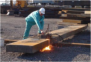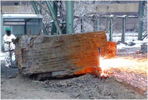 Phoenix Services LLC provides service to custom size large scrap pieces to our customers’ specification allowing for these materials to be charged into the furnace for melting. Large scrap, including scrap from slag pots and oversize pieces reclaimed from the processing plant grizzly, ladle skulls, tundish skulls and scrap billets or slabs, is prepared to specification size through breaking material with a crane and drop ball, cutting material with a hand-torch or lancing large, thick scrap pieces. Service is provided “open-air” or within a building which may include a bag-house system dependant on local area environmental regulations. Prepared materials are delivered by truck or railcar to customer designated locations. Phoenix Services provides the necessary equipment, fully operated and maintained, for the preparation of large scrap. We work with each of our customers to determine the most cost efficient method for supply of oxygen and gases when cutting/lancing service is provided.